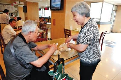 “一份凉拌面,俩韭菜馅饼,自己带茶叶沏壶茶,20来块钱,老两口吃得饱饱的,还能再买点别的晚上吃。”昨日中午12时,位于西城区西便门外大街的广电新302餐厅内,81岁的王师傅和老伴正在享用他们的午餐。