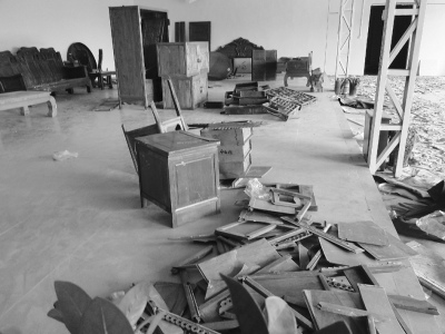 记者看到,该卖场为简易结构,东侧已经坍塌了大半,废墟下的家具已被清理出来;而卖场另半边靠近海府一横路延长线一侧的墙壁和顶棚也摇摇欲坠,路人纷纷绕行。卖场老板郑先生介绍,该红木家具卖场去年10月底才开张,面积共1080平米,还没到半年就发生意外。4月28日凌晨5点,卖场突然发生了坍塌,他接到电话赶过来一看,顿时就傻眼了:一下子就倒了大半,大概有700平米,许多家具都被埋压在里面,大部分完全损毁。