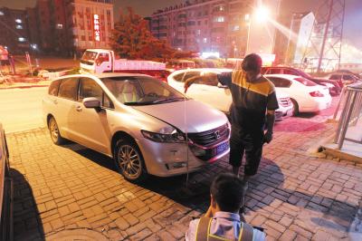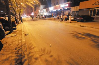 前天22时53分,记者赶到事发处时,交警正在勘查现场,在沙河口区绿波路70号楼楼头马路上有一处血迹,数十人围观议论。在距血迹七八米处有车体残片,路边有3辆车被撞,分别是一辆比亚迪车后保险杠处被挂碰;一辆奇瑞轿车左前灯被撞坏;还有一辆本田轿车右前灯被撞凹陷,其中有的车位置已经移动。