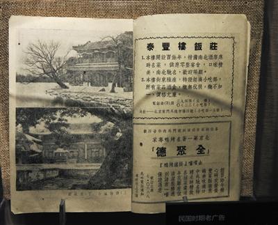 同时,全聚德在民国时期做的老广告,也被收藏在老版的北京志里。老广告显示,那时,全聚德就已经是“北京第一著名烤鸭专家”,并对外广而告之:到北京必须到前门吃烤鸭。