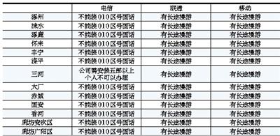 昨天,京津冀三地消协公开致函国家发改委、工信部和三大通讯运营商,建议逐步降低并直至取消京津冀地区长途及漫游通讯资费。记者随后调查发现,自2010年10月至今的4年中,不断有消息称河北13个环首都县市将实现与北京的通讯一体化,然而4年过去了,13个环北京县市里,除三河市可以以公司名义安装五部以上电话能办理010电话外,个人均不受理此业务。