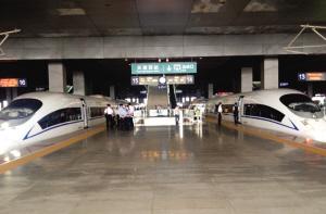 16时40分,两列高铁列车同时驶出天津西站。