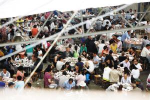参加帮忙的居民介绍,子君社区有1100多户、3000多人,大概90%的都请了。前来吃饭的居民每个最低给100元,有的要送几百元,加上其他人送的大礼,这次张荣至少可以收几十万元。而邀请居民的活计大多是让下面队里负责人来办。在操办事情前,张主任还专门对小学、客堂进行了改造,搭建了钢架棚。