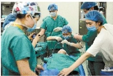 ④下午7时45分,医生在对俊俊进行手术。一颗黄豆大小的塑料子弹从俊俊的气管里取出,俊俊转危为安!