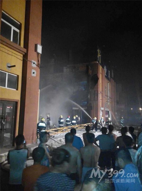 哈尔滨香坊区一汽配城起火 男子跳楼逃摔断手臂