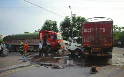 两大货车“夹击”小客车变形成“饼子” 致4死6伤