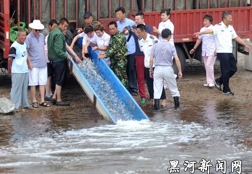 今年全市预计增殖放流各种鱼类苗种1152万尾。据了解,经过多年增殖放流,黑龙江及其它水域生态群落结构和环境得到了有效的改善,黑龙江黑河段近年来鱼类资源大幅度增长,资源的恢复有效促进了渔民增收。