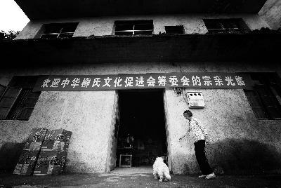 柳艳兵的老家,中华柳氏文化促进筹委会的人之前来时留下了门上的横幅,那天,柳日生特意买了烟花庆祝 摄/法制晚报记者 刘畅