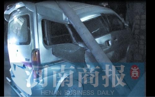 渣土车挂断电线杆 一辆面包车被砸报废
