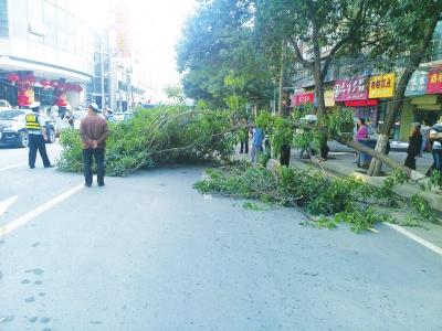 7月10日上午8时20分许,在永昌路南口兰林路农贸市场附近,一棵大树突然倾倒,造成一名过路男子受伤。