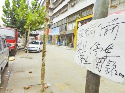 夜市摊挂奇葩警示牌 要“罚”门前违章停车(图)