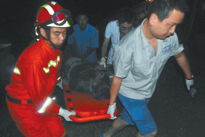 经过15分钟的紧张救援,被困人员被安全救出,官兵们立即利用担架将被困人员转移至救护车,送往当地医院进行救治。(赵炜 记者 张骥 摄影报道)