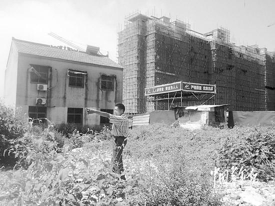 参与互动(0)泗洪县旗杆庄、大修厂危旧片区改造工程项目新建的小区。孙成梅的丈夫王建兵站在自家房子的废墟上。本报记者李超摄