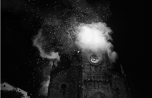 一个当时路过的市民回忆,最初的火苗隐约是从教堂的后面开始烧起来的,等到出现大面积明火的时候,教堂已经被烧了一大半了。