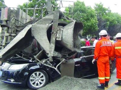 半个车身都给“压没了” 25吨混凝土倒了下来
