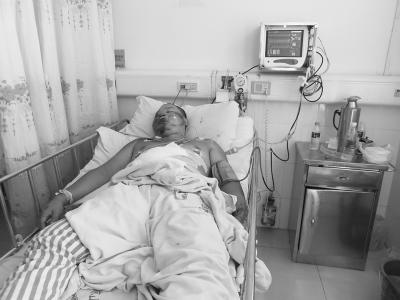 昨日中午,记者在海口市第三人民医院重症监护室看到了躺在病床上的吴清越。主治医生介绍,吴清越肝脏破裂出血,情况一直不稳定,仍未脱离危险期,“如果再出血的话,还得做手术。”