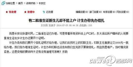 不结扎孩子不能上户口 陕西卫计委:街办做法没错