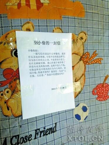 妹子一年被盗4套内衣 写公开信望小偷住手(图)
