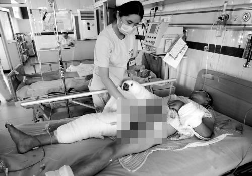8月5日下午,沈阳晚报、沈阳网记者见到张先生时,他已经做完手术被送进了重症监护室,身上多处裹着绷带。据该院林医生介绍,患者烧伤面积在15%左右。“烧伤面积不大,但是在深4度,比较严重,下午对他双手和大腿烧伤部位进行了手术。右手需要截肢,左手的大拇指和食指需要截肢。目前还没有脱离生命危险,双腿是否能保住还要看这几日的恢复情况。”