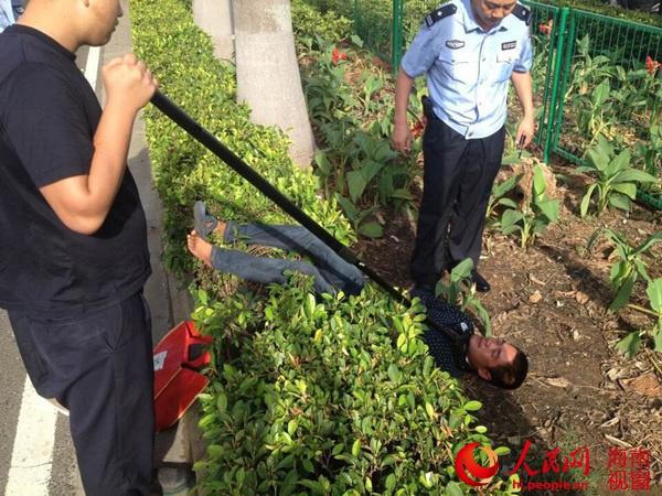海口红城湖路一男子当街持刀拦车,被警方制服