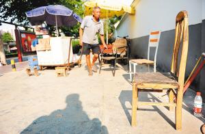 吴师傅每天都在自己的小摊附近摆放凳子和椅子 记者翟小雪 实习生田丛 摄