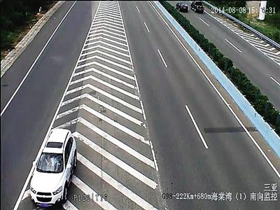 据介绍,8月8日下午3时20分左右,在环岛高速海棠湾出口附近路段,一辆上海牌照的白色越野车突然停车导流线上,没人下车,且不在后方设置安全警示标志。