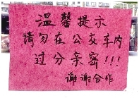 情侣公交车上激吻 车长贴条:请勿过分亲密(图)
