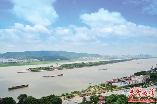 8月19日,蓝天白云下的长沙湘江风光带。 记者 田超 摄