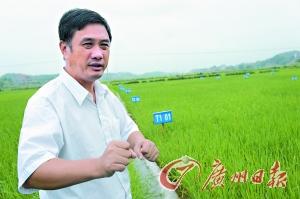 茶陵县农业局农业资源与环保站站长陈柏年在试验田中。