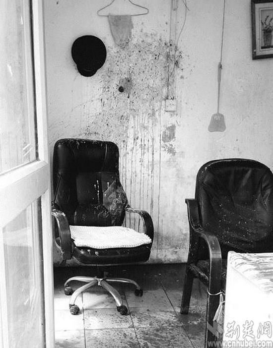 图为:保安岗亭的墙上椅子上被泼粪臭不可闻 (记者李光正、饶纯武摄)