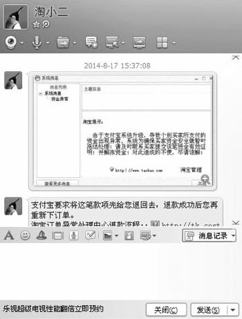 随后,小赵按照对方的指引接受了对方开启的远程桌面控制,并按对方电话说明的步骤进行操作。“加了QQ后他便向我发了一个淘宝系统消息的截图,上面有关于支付宝系统升级,个别买家支付资金出现异常的提示。”小赵说,网名为“淘小二”的QQ号随后发信息说,为了避免支付宝资金被冻结,发给他一个游戏网页支付链接,小陈按对方的提示将自己支付宝里的22118、70元钱全部付到了对方提供的游戏账号中。支付完成后,对方的电话却打不通了,QQ号发过来一个退款成功的截图,让小赵耐心等待就下线了。