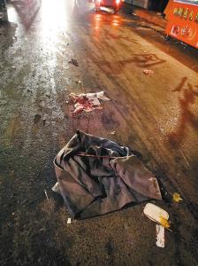 昨晚8时,事发处地面依旧留有被撞者的衣服和血迹