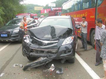 10点左右,在球溪附近一弯道处,两辆客车发生追尾事故,接着,17辆来车或因刹车不及时,接连相撞。