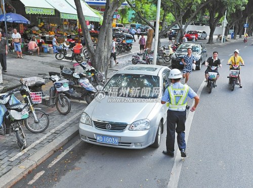 昨日9时45分许,民警巡查时发现,车牌号为闽AFT239、闽D1G039的两辆汽车停在铜盘路市场附近的非机动车道上,阻碍了交通。民警拍照取证并开具《违法停车告知单》后,立即叫来拖车,准备将车辆依法拖移。就在拖车准备拖移车牌号为闽D1G039的汽车时,司机从路边店内跑出,将车开走。