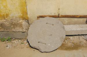 在尹先生指引下,记者来到位于清池大道与志强路交叉口东北侧的事发地西条巷。小巷宽窄不一,事发地点宽度不足1.5米,距小巷南口15米左右,肇事井圈仍然躺在小巷内,占了多半条小巷。井圈上、地上满是血迹。井圈直径1米,需三名成年男子才可抬起。