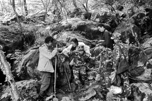 五旬女子摔伤困山中 消防战士9小时将其救出(图)