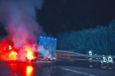 据报警人介绍,两车发生追尾后,前方货车司机将车停靠在安全位置后,立即下车查看情况,发现后面的货车内有2人受伤,其中1人伤势不重。后来,这名伤势较轻的男子和前车司机一起,将脚部受伤严重的后车司机救出,转移至高速路下。刚将受伤司机转移走,后面这辆车就着了,他们赶紧报警等待救援。(通讯员田雨海)