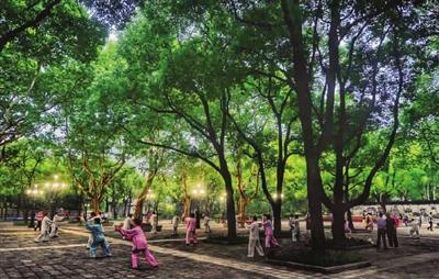 ■ 朦胧晨曦中,路灯还未灭,晨练的人们已在鲁迅公园内舒展肢体