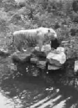 动物园游客逗老虎手提包落水 老虎叼包玩弄(图)