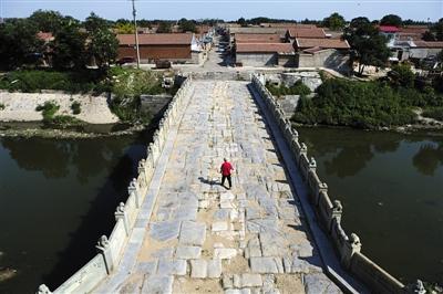 7月10日,通州张家湾镇,一名村民走过古老的通运桥。新京报记者 浦峰 摄