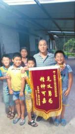 “恩人啊,感谢你对我们家的救命之恩,这面锦旗表表心意。”8月28日傍晚,杨忠翠带着8岁的孙子陆飞文来到黄土镇上蒋金瀚的家中,双手奉上锦旗。
