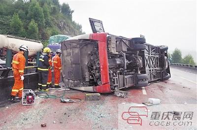 客车侧翻事故现场。 本组图/通讯员 向玉帆 摄
