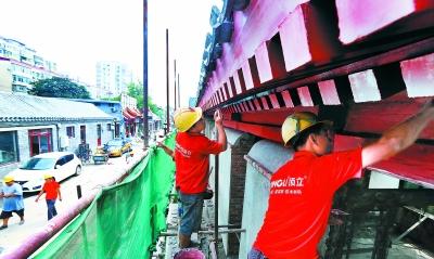 “我们去年这个时候就进驻了,已干了一年了,把架空线入地,铺地下管线,修缮危房,铺装外立面,就没闲着。这不,要赶在国庆节前把大街修完。”一位施工人员边干活儿边介绍着。