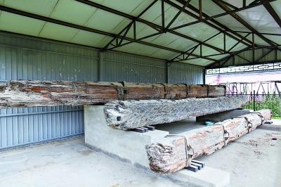 在三教庙内,保存着三根巨型皇木。