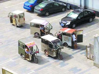 “10块钱,5分钟就到,走么?你看这天,雨可说来就来啊!”保安师傅的话刚说一半,一辆农用改装三轮便不知从哪儿钻了过来,司机一句话,便把看上去已经很疲惫的外地游客拉上了车。