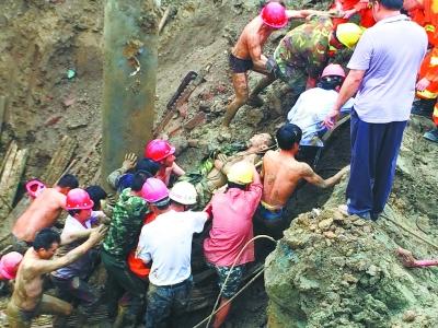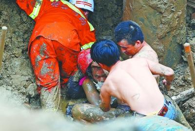 “我的手都被磨破了,不过,还没等流出多少血,伤口就被泥糊住了。”一名参加救援的工友说。