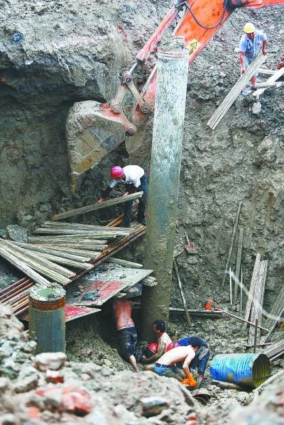 据附近一名老居民介绍,十几年前,这个基坑所在的位置是水塘,所以基坑底部淤泥多。