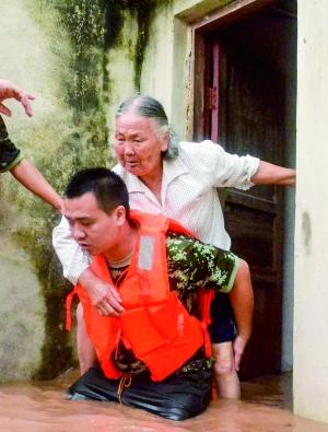 重庆消防战士在葛兰镇背老人转移。新华社发