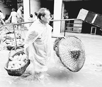 图为9月13日下午,四川省华蓥市庆华场镇洪水逐渐退去,受灾群众开始返回家园。