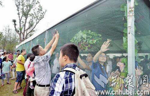 昨日上午,记者来到现场,仍有大量市民涌入观看,随处可见蝴蝶节的宣传牌以及楼盘促销广告。大量市民正在百余平方米大的尼龙网内观看,确实有人抱着小孩用手捉网上的蝴蝶。尽管多名工作人员用喇叭呼吁不要捕捉,但效果甚微。一工作人员称,前日一天就有近千只蝴蝶死亡。